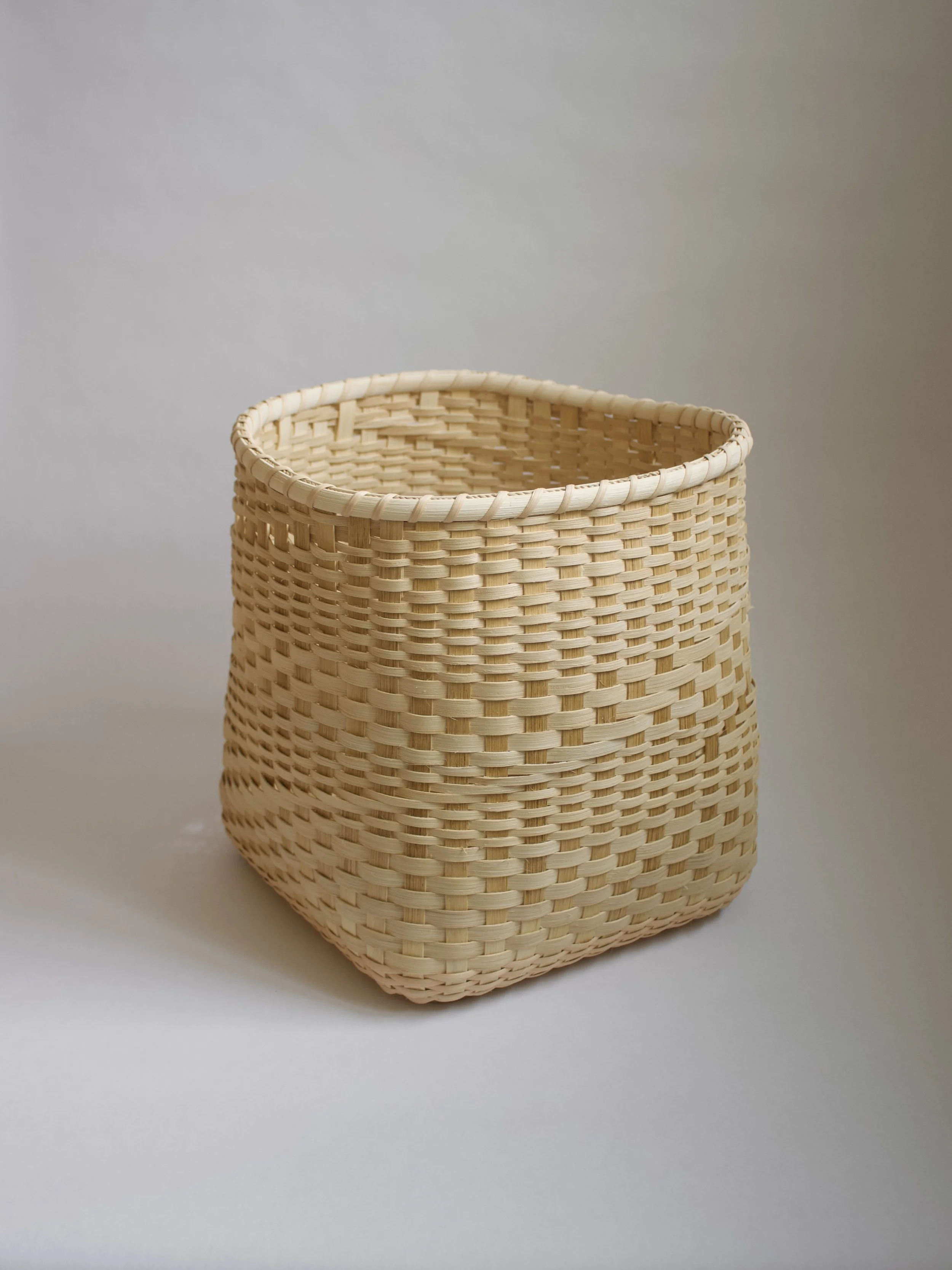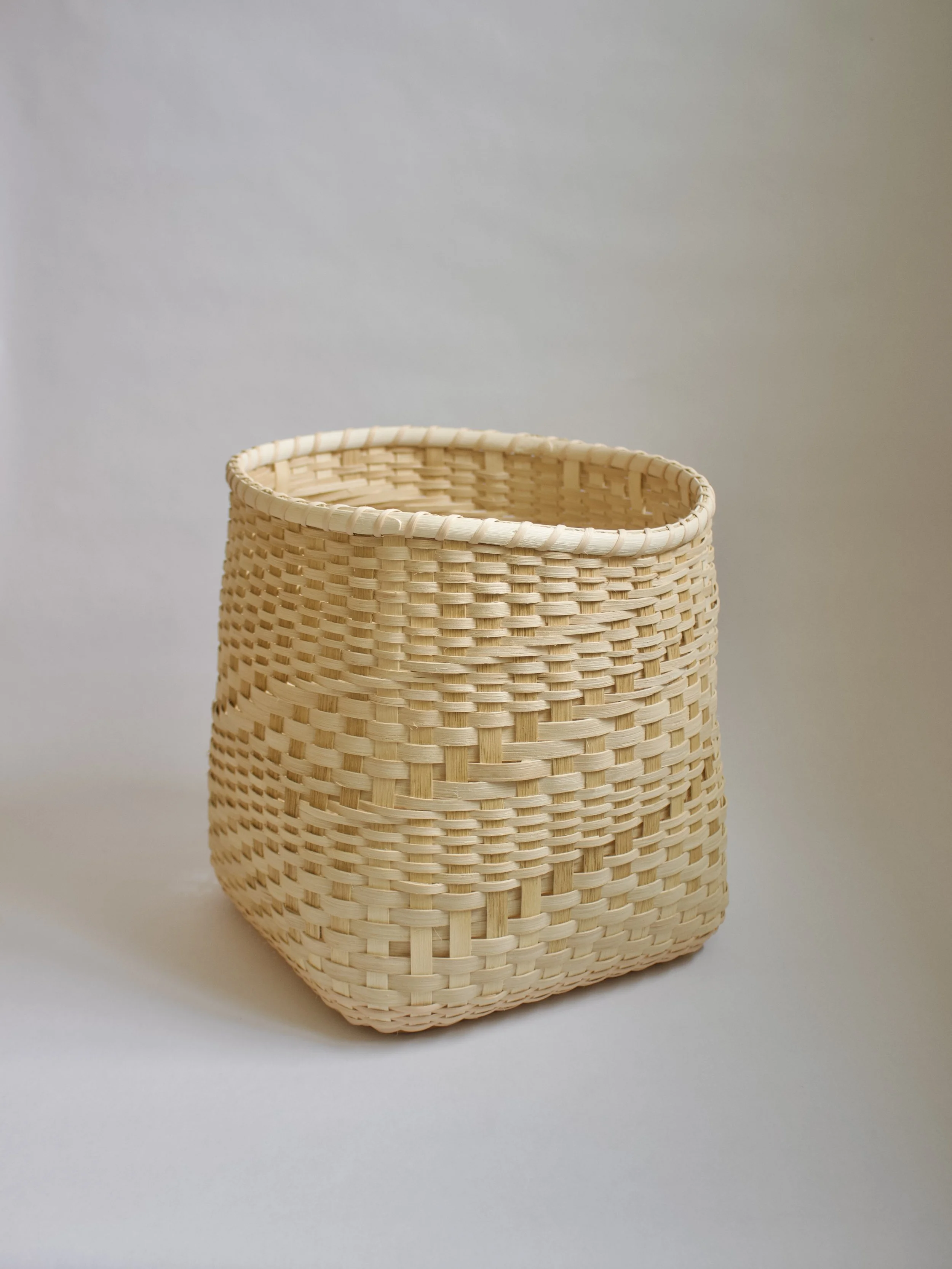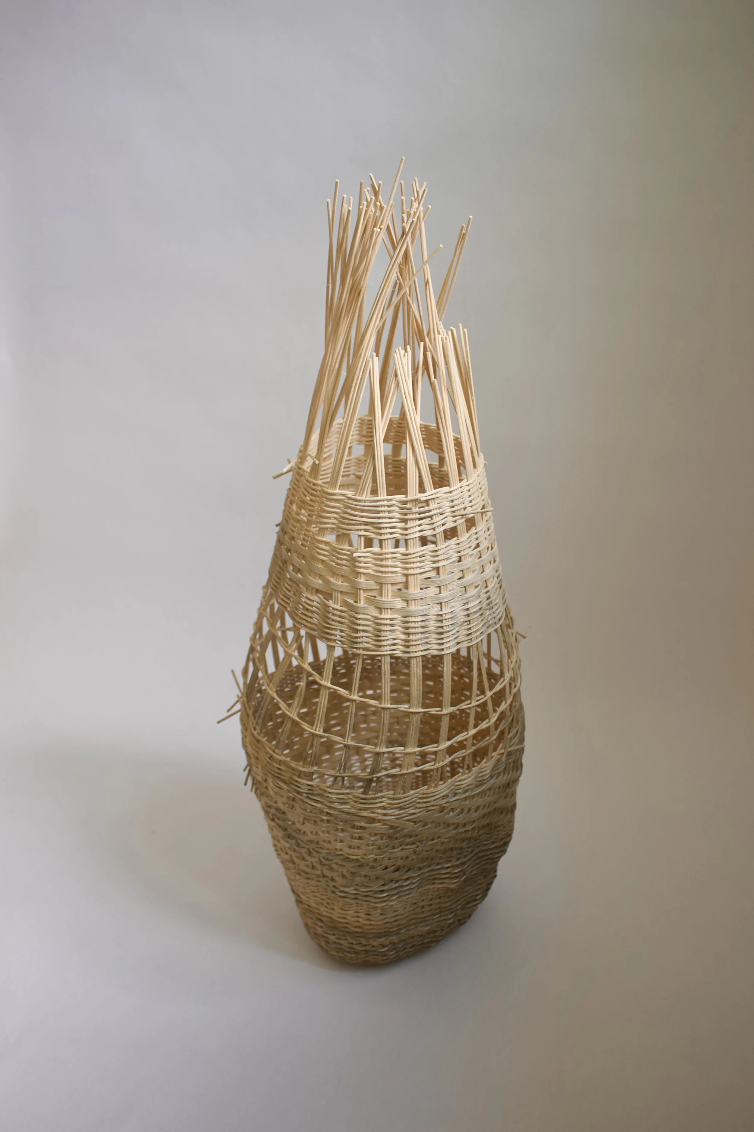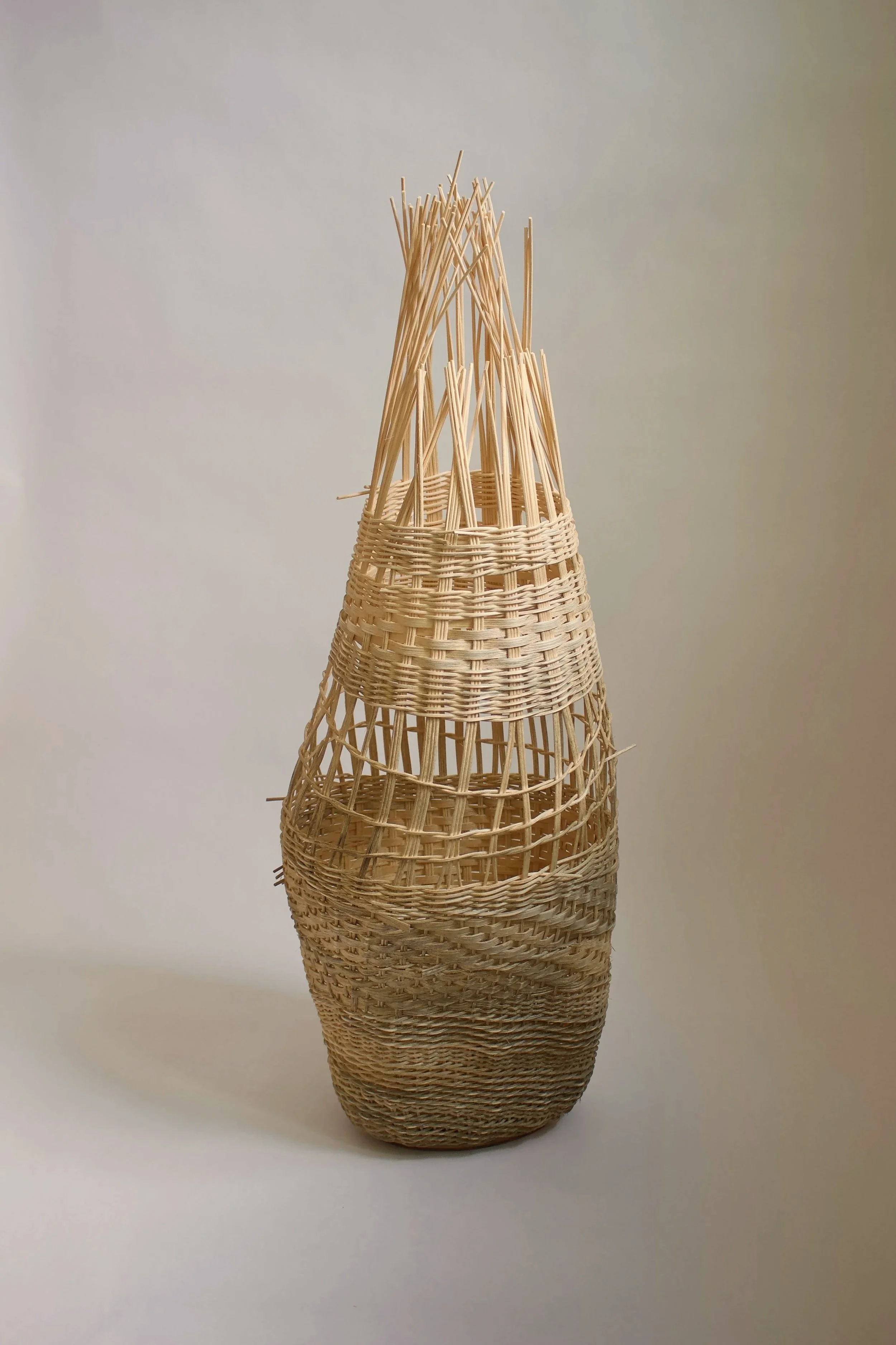 Handwoven over a metal base and lampshade frame. Approximately